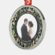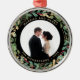 Dieser prächtige, frisch vermählte Sake-Ornament besticht durch einen üppigen, festlichen Kranz aus goldenen Blätter, Weihnachtsgrün und roten Heiligbeeren auf einem modernen schwarzen Hintergrund. Ihr persönliches Hochzeitsfest-Foto geht in die Mitte mit den Worten "Verheiratet und fröhlich", und es gibt sogar einen Platz für Ihren Namen und das Jahr. Ein perfektes Geschenk für den neu verheirateten Ehemann und die Ehefrau.