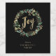 Diese herrlichen Ferienweinetiketten zeichnen sich durch einen festlichen Aquarellkranz aus goldenen Blätter, Weihnachtsgrün und roten, heiligen Beeren auf einem modernen schwarzen Hintergrund aus. Das Wort "Freude" wird in eleganten Imitaten in Goldkalligraphie vorgestellt.