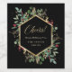 Diese wunderschönen Ferienweinetiketten verfügen über einen geometrisch geformten Rahmen aus Imitaten mit passenden goldenen Blätter, Weihnachtsgrün und roten Heiligbeeren auf schwarzem Hintergrund. Das Wort "Cheers!" erscheint in der modernen Goldkalligraphie. Ideal für Ihre Winterhochzeit oder Ihr Party.
