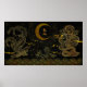 Gilded Line Zeichnend chinesischer Phönix und Drag Poster