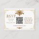 **Elegant Gilded Royal QR RSVP Cards** Treten Sie ein in die Welt der Eleganz mit unserer exquisiten Creme und Gold QR Code RSVP Karte, sorgfältig entworfen, um mit unserer luxuriösen Hochzeitssuite zu harmonieren. Diese RSVP-Karte ist nicht nur ein Leuchtturm klassischer Eleganz, sondern auch ein Zeichen für modernen Komfort. Die mit viel Liebe zum Detail gestaltete Karte zeichnet sich durch ein verziertes Blumenmuster aus, das dem aufwändigen Design der ursprünglichen Einladung entspricht. Die goldene Akzente in einer cremigen Kulisse schaffen ein Gefühl der Opulenz und laden Ihre Gäste ein, sich in der Pracht Ihres besonderen Tages zu entspannen. Im Mittelpunkt der Karte steht ein nahtlos integrierter QR-Code, der den Gästen eine mühelose Möglichkeit bietet, ihre Anwesenheit zu bestätigen. Ein einfacher Scan führt sie zu einer maßgeschneiderten Hochzeitswebsite, auf der sie alle Details Ihrer nächsten Nuptials finden und ihre Begeisterung teilen können. Diese RSVP-Karte ist nicht nur eine Anwesenheitsanfrage, sie ist ein geschätzter Sake, der Ihre Gäste an die bezaubernde Veranstaltung erinnert. Versichern Sie sich einen unvergesslichen ersten Eindruck und einen bleibenden Eindruck mit unserer Creme und Gold QR-Karte RSVP-Karte, der perfekte Auftakt zur Geschichte Ihrer Hochzeit.