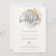 Eleganter vergoldeter Mond mit Wildblumen, Brautdusche. Elegante Typografie Design Stilvorlage mit der Koordination dunkelnavy blauen Farbunterlage.