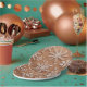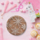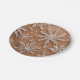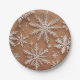 This delicate composition celebrates the intricate beauty of nature through a series of highly detailed snowflakes set against a warm, sandy ochre background. Each snowflake is rendered with fine, lace-like precision in a crisp white, creating a striking contrast that emphasizes their unique hexagonal symmetry. The background features a subtle, speckled texture reminiscent of falling frost or a light dusting of snow, while the overall warm tone lends a sophisticated, vintage holiday aesthetic to the piece. The arrangement is organic yet balanced, capturing a frozen moment of winter elegance.