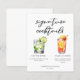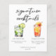 Dieses erfrischende Cocktails-Cocktails-Menu am Nachmittag bietet eine schlichte schwarze Typografie über 2 Drinks und deren Zutaten für Ihre Hochzeitsfeier. Ein niedlicher Gin & Tonic und Tequila Sunrise zeichnend fügen Ihrem Bar einen coolen Flair hinzu. Füllen Sie bitte die Namen des Paares und das Datum für seinen Empfang aus.
