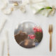 Niedliches Foto einer Katze, die Blume auf einem Fensterbrett riecht.
