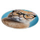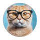 Das sonnige Foto einer Ingwerkatze mit Brille.