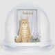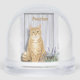 Personalize this snow globe with a pet's name, or any text on this design featuring a cute orange tabby cat posing by a bunch of wild lavender in front of a door from an original painting inspired by the artist’s own cats.