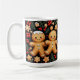 "This heartwarming design features two cheerful gingerbread figures holding hands, decorated with bright white icing and button details. They are nestled in a beautiful arrangement of dark pine boughs, vibrant red berries, and assorted star and snowflake cookies, all set against a rich, dark background for high contrast. This cozy and traditional graphic is ideal for Christmas pajamas or socks, kitchen towels and oven mitts, holiday cards and stationery, cushions, or any product intended to evoke the warmth and togetherness of holiday baking and cheer."