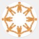 Lebkuchenmännchen, die Hände mit Lebkuchenfrauen im Kreis halten. Winterferien sind Symbol für Unterstützung, Freundschaft, Zusammenarbeit und Geschlechtergleichheit.