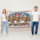 Celebrate the sweetness of the season with this charming winter scene featuring a cheerful gingerbread family dressed in festive hats, standing joyfully in the snow before a cozy cottage. Colorful buttons, candy-like decorations, and whimsical icing details bring each character to life, while gently falling snow and twinkling pine trees create a magical forest backdrop. The warm lights of the gingerbread house and a rustic wooden fence lined with vibrant ornaments enhance the nostalgic charm, evoking memories of classic holiday traditions. Ideal for holiday lovers who adore playful, storybook-style designs, this heartwarming composition blends folk whimsy and festive flair, perfect for seasonal displays and winter decor. AI generated artwork.