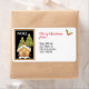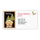 Weihnachtslabel mit dekorierten Weihnachtsbaumen, einem Lebkuchenhaus und Weihnachtsgrüßen.
