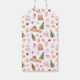 This fun and festive gift tag can be personalized with your name, relation or title. It features a watercolor gingerbread house and beautiful pink poinsettia flowers. The text combines handwritten script and sans serif fonts for a stylish and modern look. The snowman, decorated pine trees and holiday wreath add a festive touch. This is perfect for Christmas gifts and party favors.