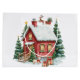 Ein elegantes Winterdesign mit einem Lebkuchenhaus, fliegenden Rentieren, Tannenbäumen mit Sternen und Geschenken.