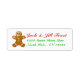 Lebkuchenmann mit grünen und orangefarbenen Adressetiketten.