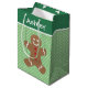 Gingerbread man and pastel green polka dot pattern on personalized gift bags, great for kids or kids at heart.
