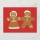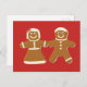 Lebkuchen mit weißem Zuckerguss Keks Mann und Frau Paar halten die Hände für den Weihnachtsfeiertag. Holen Sie sich dieses niedliche Paar, um Ihre Saison hell mit einem traditionellen Weihnachtsbild auf einem hellen fröhlichen roten Hintergrund zu machen.