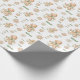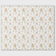 Niedliches Weihnachtspapier in weiß beige und grün mit einem niedlichen Lebkuchenmann, Lebkuchengebäck und Imitaten goldene kleine Schneeflocken. Kate Eden Art