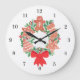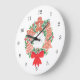 Diese bezaubernde Wanduhr ist mit einer Aquarellfarbe eines Weihnachtskranzes geschmückt, der mit Lebkuchengebäck und saisonalem Laub geschmückt ist. Original Wasserfarbe © Michele Davies.