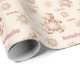 Niedliches Weihnachtspapier in Beige und Rosa für kleine Mädchen oder Mädchen mit einem bezaubernden Lebkuchenmädchen, Lebkuchengebäck und Imitaten goldene kleine Schneeflocken. Kate Eden Art