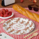 Kinder jeden Alters werden diese niedlichen Teller in der Weihnachtszeit Liebe! Sie zeichnen sich durch ein Muster von bezaubernden braunen Lebkuchenmännern mit weißer und roter Dekoration aus. In der Mitte befindet sich ein rot gezeichneter weißer Kreis mit zwei benutzerdefinierten Textfeldern in rot und braun. Feierlich für die Saison!