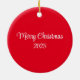 Christmas Ornament is shown in a round shape with a white background and a red colored back side with a cute holiday gingerbread man print.