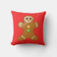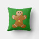 Lebkuchenmann mit orangefarbenem und grünem Knopf auf der einen Seite rot und auf der anderen Seite ein Lebkuchenmann mit rotem und gelbem Knopf auf grün.