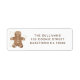 This gingerbread return address label features watercolor cookies, gold foliage, and stylish script typography. Easily customizable. Original Watercolor © Michele Davies.