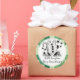 Niedlich zu/von Weihnachtsaufkleber oder "aus der Küche der" Geschenketikett für Ihre hausgemachten Speisen, Süßigkeiten und Leckereien. Ein Lebkuchenmensch hält einen Süßwarenstock mit Sternen und Kiefernästen. Ideal für Weihnachtskekse, Kuchen und andere Süßigkeiten.
