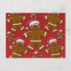Kann ich zu Weihnachten keine Kekse schicken? Tun Sie das Beste und schicken Sie ein paar dieser Cartoon-Lebkuchenmänner auf einem roten Hintergrund, der in einem Hut des Weihnachtsmanns gekleidet ist.