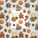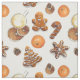 Aquarellkekse mit Aquarellorangen, trockenen Orangenscheiben, Nüssen und einer heißen Tasse Weihnachtsschokoladenkunst, Weihnachtsstern, Weihnachtsbaum, Zuckerrohr und einem Lebkuchengebäck. Ein hübsches und gemütliches Weihnachtskuchen-Duft Muster.