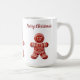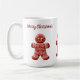 Niedlicher Lebkuchen Mann Kekse Tasse mit weißen Akzenten. Feierliche Feiertage. "Frohe Weihnachten" in ziegelroten Schriftzeichen kann auf einen individuelle Name oder Text Ihrer Wahl bearbeitet werden.