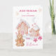 Dieses Design zeigt eine Aquarellbilder von Lebkuchenhütten, Lebkuchenmädchen und Weihnachtsweihnachtsgebäck