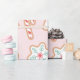 Dieses süße und festliche Muster zeigt eine Reihe von klassischen Weihnachtskeksen, darunter Lebkuchenmänner, dekorierte Milben, Bonbons, Weihnachtsbäume, Sterne und Herzen. Set vor einem weichen rosa Hintergrund mit winzigen weißen Punkten, das Design strahlt Wärme und Feiertagsjubeln aus. Die Kekse sind in Pastellfarben dekoriert und verleihen dem Ganzen ein angenehmes und spielerisches Ambiente.