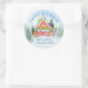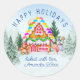 Ein Gingerbrot House Rundaufkleber mit einem Keks, Süßigkeiten und Winterschneedesign.
