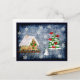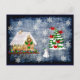 Fröhliche Urlaubsszene mit Lebkuchenhaus, Schneeflocken, Schneemann und Baum, die von hübschen, roten Kardinälen dekoriert wurden, um wie Stoff auszusehen, macht dies zu einer einzigartigen und reizvollen Art, Happy Holidays zu sagen.