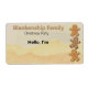 Helfen Sie Ihren Gästen, sich an Ihre Ansammlung zu erinnern oder Namen zu erlernen, indem Sie ein Etikett mit drei Fingerbread-Cookies an der rechten Grenze verwenden. Die Größe und das Design des Versandaufklebers erlauben es, den Namen des Teilnehmers am Party zu schreiben. Die Verwendung eines passenden Farbstift oder Markers an der Ansammlung für den handgeschriebenen Namen kann das gesamte Design ergänzen. Personalisieren Sie den Text, entfernen Sie jeden Text oder bearbeiten Sie ihn mit dem Designwerkzeug, um einen Schriftart auszuwählen, den Sie bevorzugen.