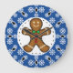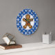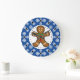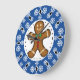 Gingerbrot Man on Blue White Snowflakes Pattern Große Wanduhr