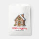 Geben Sie Ihr Bestes für ein lustiges Lebkuchenhaus dekoriert Weihnachten, Feiertag. Ein dekoriertes Lebkuchenhaus zeigt sich auf dieser Gunst-Tasche mit Ihrer individuellen Nachricht unten. Es ist eine ideale Tasche für ein Lebkuchenhaus, das Party, Kekse-Austausch, Weihnachts-Party, Feiertag oder Weihnachts-Geburtstagsparty dekoriert. Verfügbar mit passenden Produkten.