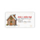 Verpassen Sie Ihre besten Ferien mit einer süßen Adresse mit einem dekorierten Lebkuchenhaus mit blassen Schneeflocken. Dieses Label eignet sich perfekt für ein Lebkuchenhaus, das Party, Urlaubskorrespondenz, einen Kekswechsel, Weihnachts-Party, Feiertagsparty oder Weihnachtsgeburtsfeier schmückt. Verfügbar mit passenden Produkten.