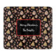 Diese niedlichen Lebkuchenkekse schmücken das Schneidebrett auf schwarzem Hintergrund. In der Mitte können Sie es mit Ihrem bevorzugten Urlaubsgruß und dem Namen der Familie personalisieren.