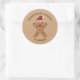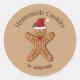 Mithilfe dieses Aufklebers können Sie gelassen werden, dass Ihre Cookies hausgemacht wurden. Das Design zeigt Desteis festliche Abbildung eines braunen Farb-Lebkuchen mit einer Weihnachtsmannmütze und einem roten Bogen. Die Hintergrundfarbe ist hellbraun. Es gibt auch zwei personalisierbare Textbereiche.