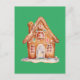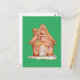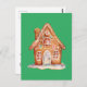 Eine traditionelle Weihnachtslandschaft eines zauberhaften Gingerbrothauses vor einem fröhlichen grünen Hintergrund. Traditionell mit einer modernen Drehung, um an den Festlichkeiten der Saison teilzunehmen. Geeignet für alle Altersgruppen und Geschlechter.