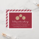 Laden Sie sich mit unserer festlichen Gingernap Ferienkekse-Tauscheinladung die beliebtesten Ferienkekse ein. Das Design zeichnet sich durch einen roten Cranberry-Hintergrund mit einem weißen Rahmen und drei frisch gebackenen Cookie-Illustrationen oben aus. Personalisieren Sie mit Ihren Weihnachts-Cookie-Swap-Informationen in einer Mischung aus modernen Skripten und Blockbuchstaben. Die Einladungen kehren zu festlichen roten und weißen diagonalen Streifen um.
