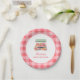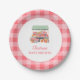 Feiern Sie die Mama-to-be mit unseren niedlichen Tellern zum lokalen Thema. Das Design besticht durch einen niedlichen Aquarellstand auf rotem Gingham-Hintergrund. Stilvoll und charmant. Verwenden Sie die Entwurfswerkzeuge, um den Text anzupassen.