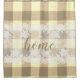 Hübscher Duschvorhang im Bauernstil mit Taupe- und Beige-kariertem Gingham-Schachbrettmuster mit weißer Spitze und Zuhause mit handgeschriebenem Schriftzeichen. +++++++++++ Kann eine niedliche Dekoration für Ihr rustikales Land Zuhause oder ein inspiriert Hauswärme, Erntedank oder Weihnachtsgeschenk für jemanden in Ihrem Leben sein.