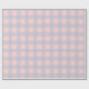A pastel gingham pattern in pink and lavender shades with a subtle wavy grid effect. Tiny white speckles add a soft textured detail across the design.