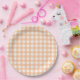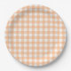 Moderne Sommer Trend Picknickdecke Gingham kariert Tartan Muster. Pastelltöne sind ästhetisch. Tischtücher aus Party in Pastellorange, Pfirsichgingham. Babydusche, Hochzeit, Party-Dekor für Mädchen.