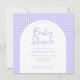 Entwerfen Sie Ihre eigene personalisierte Babydusche-Einladung mit einem schlichten minimalen Design und lila, karierten Farbmuster-Design.