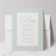 Ein klassischer grüner Gingham umrahmt diese süße und einfache Baby-Dusche. Diese niedliche Gingham-Einladung mit individualisierbarem Text ist ideal für eine geschlechtsneutrale Babydusche. Der Rücken ist ein koordinierendes Weissgrün mit weißen Punkten. Die passenden Babydusche-Party sind ebenfalls verfügbar! Sie können dies auch als Download für eine digitale Babydusche bestellen!