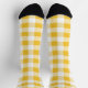 Magst du hübsche Socken? Diese Socken haben ein gelb-weißes Gingham-Muster.
